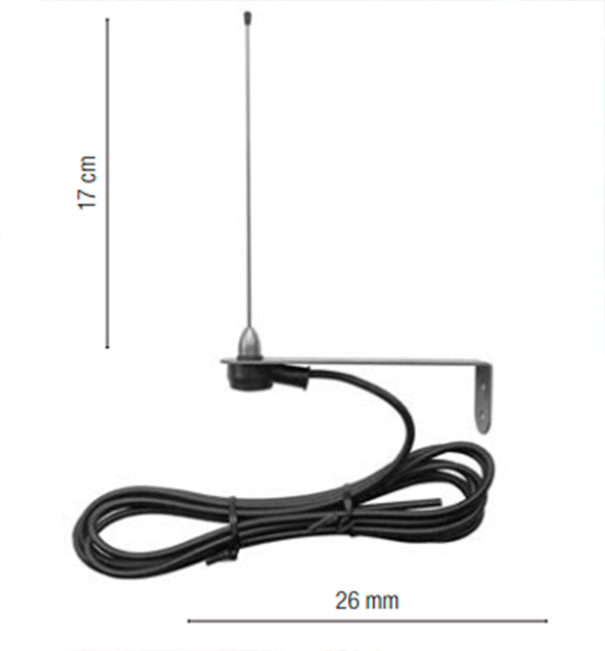 Antena con soporte ajustado para receptores o cuadro de maniobras. Con cable RG 58 de 3,5 mt.