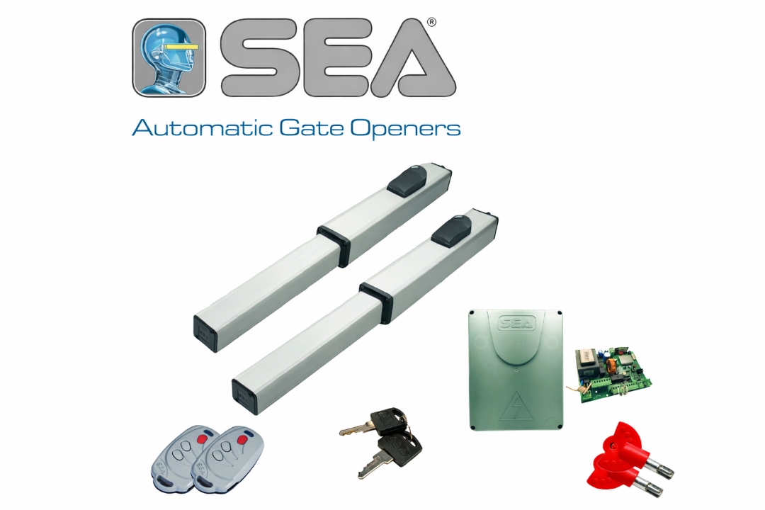 Operador hidráulico batiente para uso condominial - industrial para hojas de una longitud máxima de 7 metros.