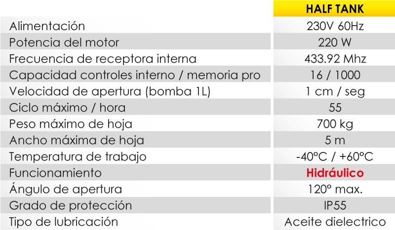 Operador hidráulico para uso condominial y para hojas de max de 5 metros, Elevada silenciosidad y fiabilidad hidráulica, seguridad antiaplastamiento garantizado por las válvulas by-pass de calibrado del máximo empuje.