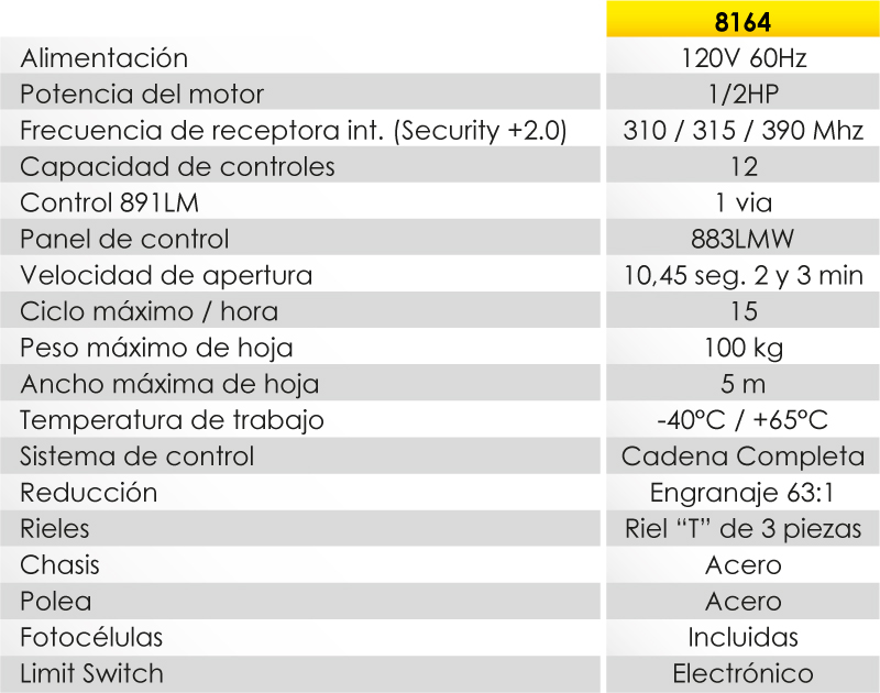 Este modelo ofrece potencia de elevación estándar y un rendimiento estable con su motor durable de 1/2 HP y transmisión de cadena.