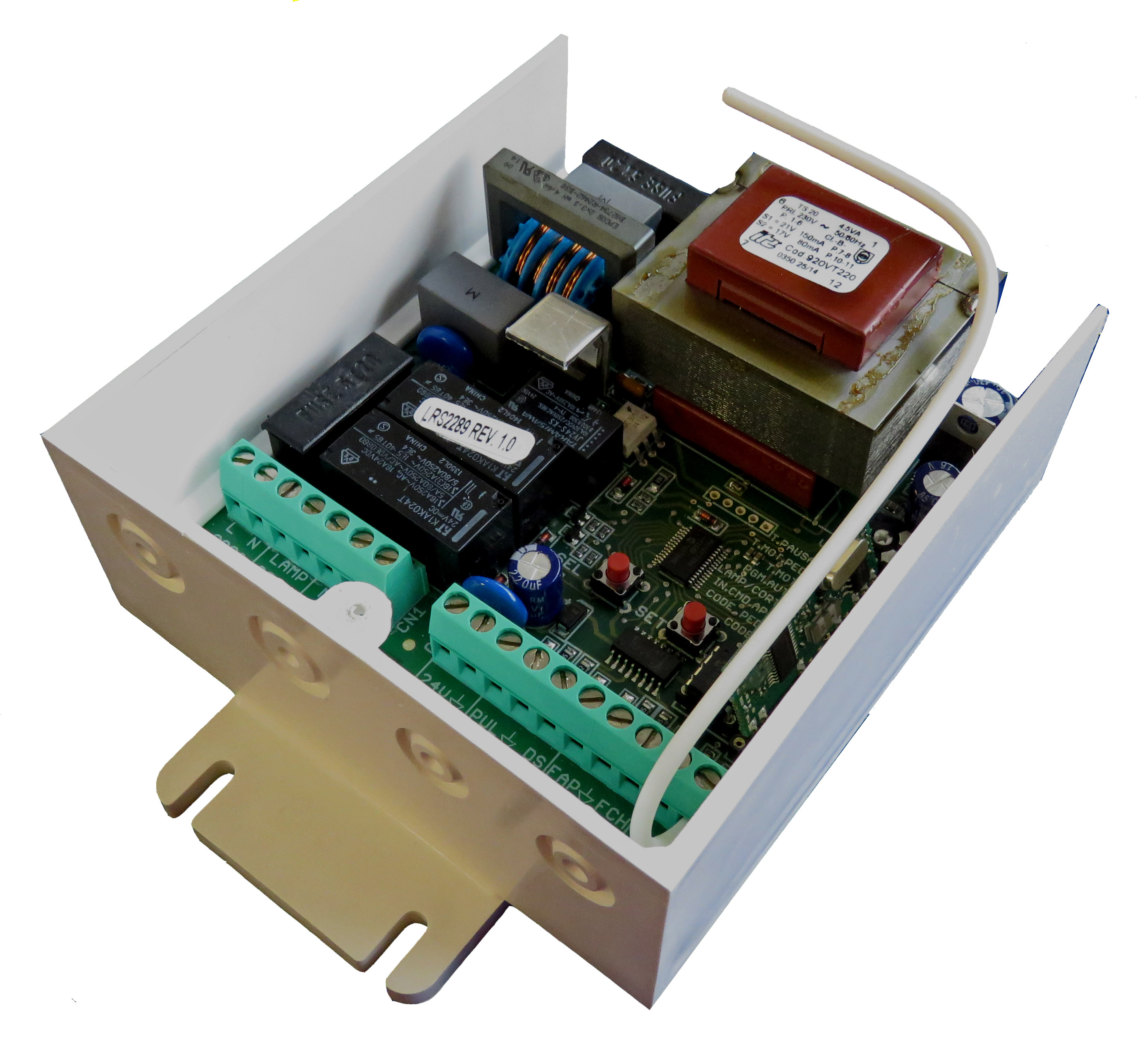 Central electronica para puertas corredizas y basculantes con radio receptor incorporado. Equipado con arranque inicial del motor, regulación de la fuerza del motor, fuerza de ralentización programable, entrada de fin de carrera, freno electrónico, paso de peatones, hombre presente.