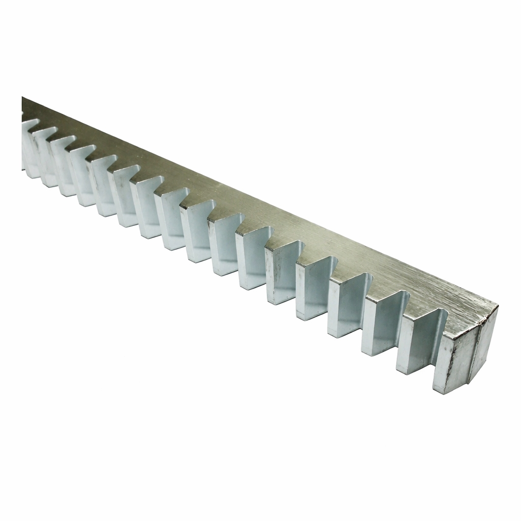 La cremallera es un perfil lineal dentado de alta resistencia para transmisión de movimiento mecánico con piñón, ideal en puertas automatizadas, sistemas de traslación y maquinaria industrial que requieren precisión y fiabilidad.