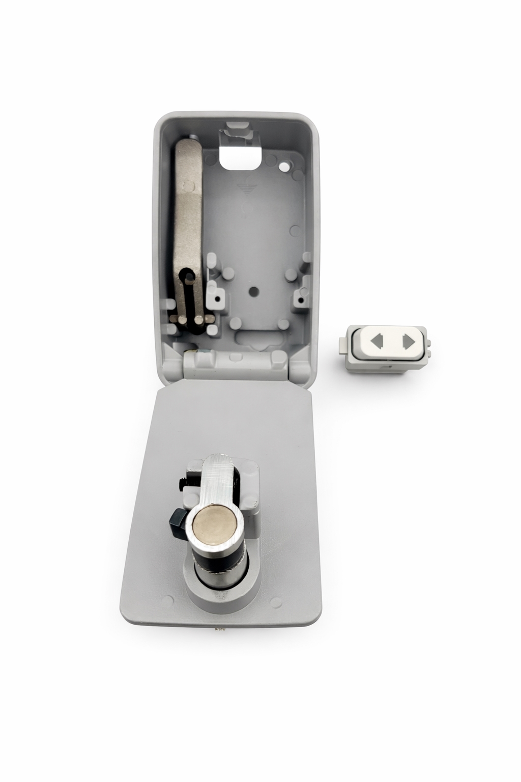 Un blindino con pulsador y destrabe manual es una taquilla blindada de desbloqueo del freno eléctrico de un motor de persiana o puerta automática.