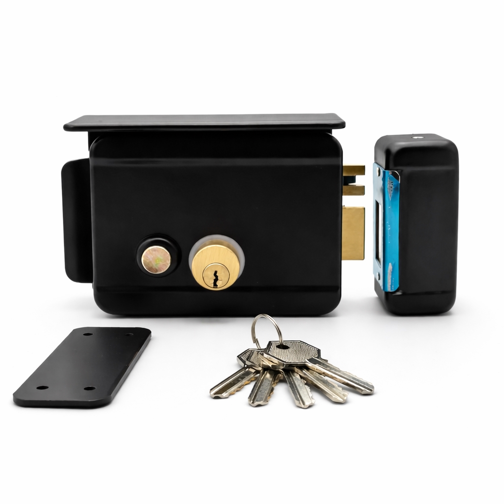 La cerradura eléctrica con pulsador es la solución perfecta para el control de accesos en puertas de madera o metal. Su diseño robusto combina operación eléctrica y mecánica, permitiendo apertura con botón interior, control remoto o sistemas de porteros eléctricos, adaptándose a instalaciones residenciales, comerciales e institucionales con facilidad de instalación y máxima confiabilidad.